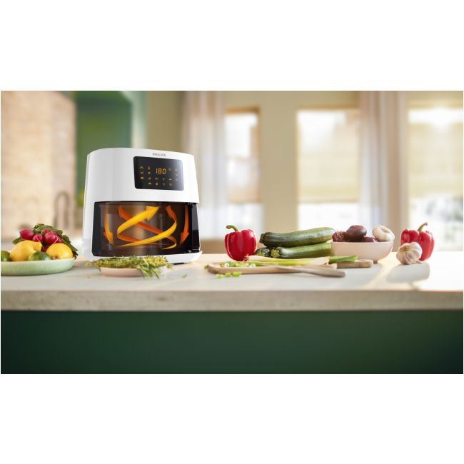 Frytownica Airfryer XL firmy Philips została zaprojektowana z myślą o Twojej rodzinie. Kosz o pojemności 1,2 kg w połączeniu z patelnią o pojemności 6,2 l ułatwia gotowanie różnych potraw. Za jednym razem można przygotować do 5 porcji dla rodziny i znajomych.