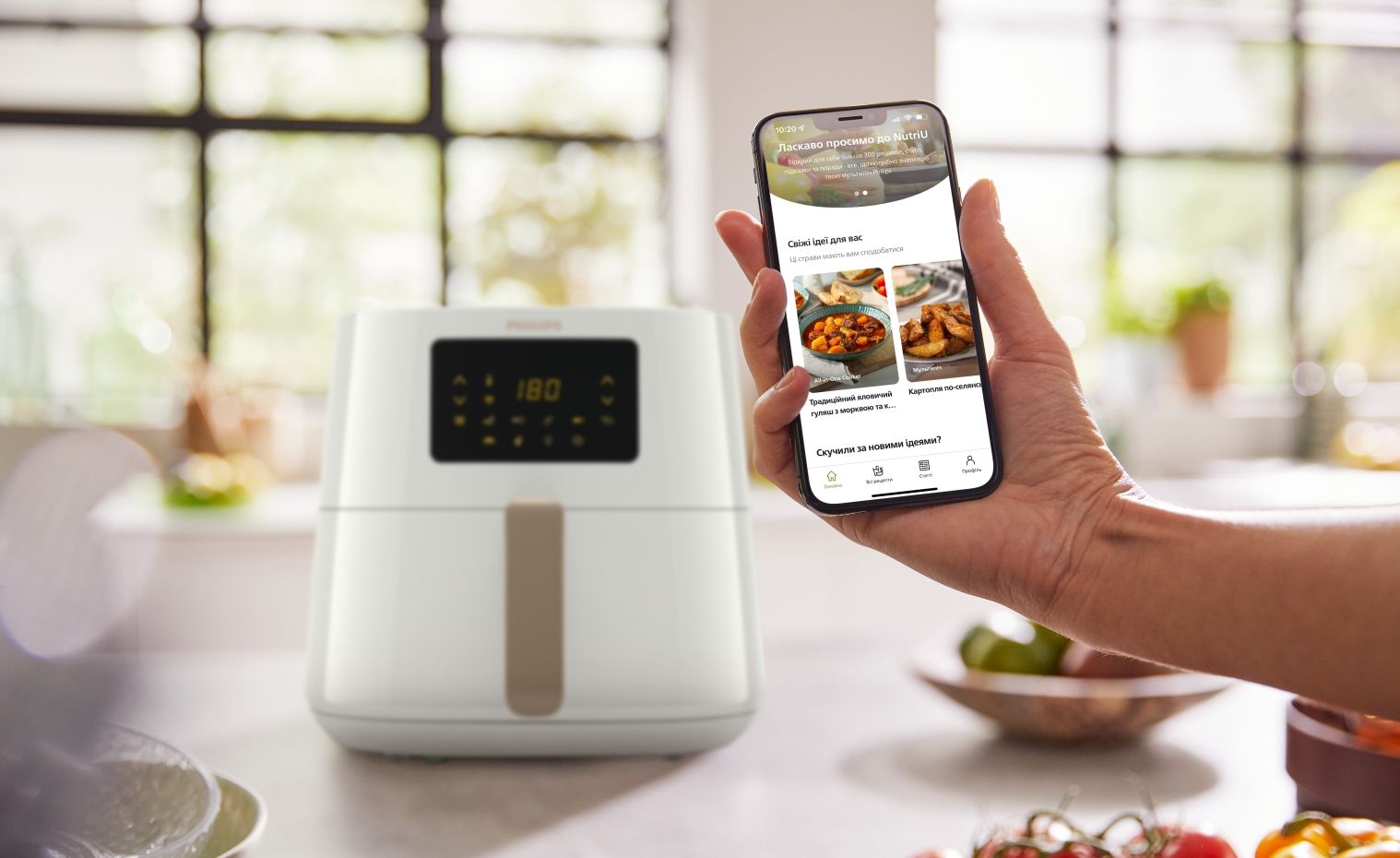 Znajdź setki* smacznych dań, które możesz przyrządzić w frytownicy Airfryer w połączeniu z aplikacją NutriU. Im częściej korzystasz z systemu NutriU, tym bardziej spersonalizowane rekomendacje otrzymujesz. Aplikację NutriU można łatwo pobrać ze sklepu Google Play lub Apple Store, a następnie sparować z frytownicą Airfryer.