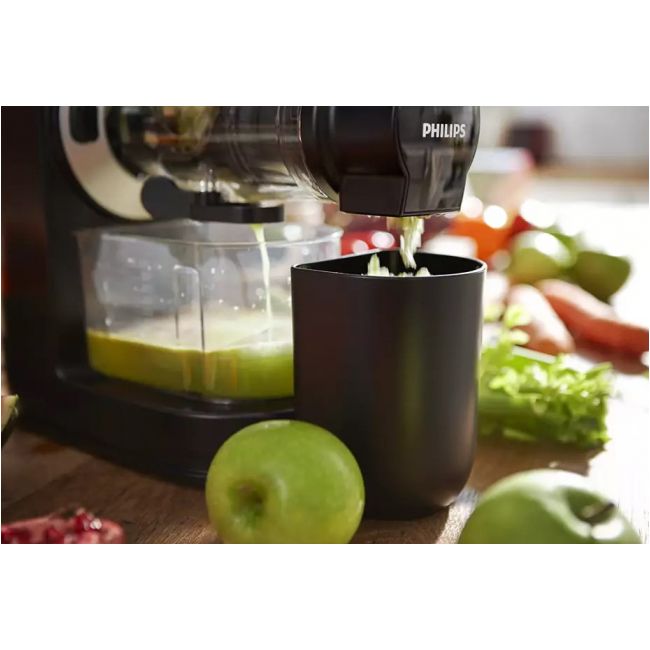 Pij codziennie porcję zdrowego soku. Wyciskarka wolnoobrotowa firmy Philips to najlepsze urządzenie do przygotowywania soków. Jest wyposażona w bardzo duży otwór na produkty pozwalający wyciskać całe owoce, warzywa i liście. Można ją wypłukać do czysta w zaledwie 90 sekund.