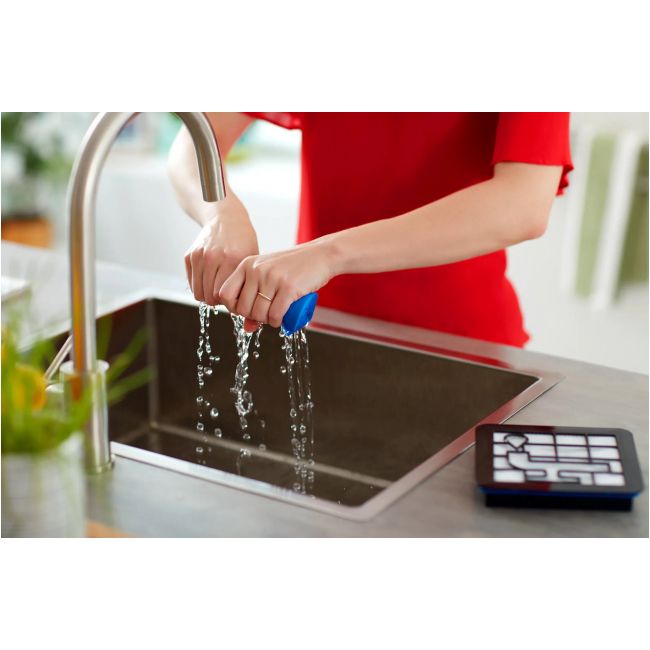 Szczotka do kurzu jest wbudowana w uchwyt, dzięki czemu jest zawsze gotowa do użycia na meblach, płaskich powierzchniach i tapicerce.