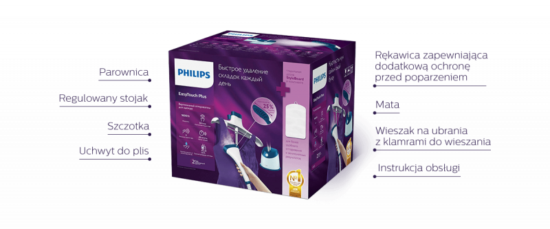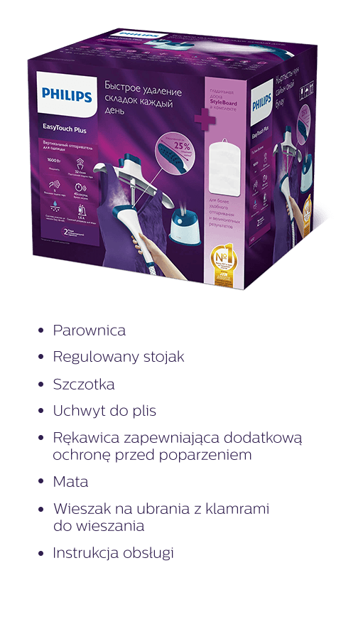 Steamer EasyTouch Plus firmy Philips został zaprojektowany z myślą o łatwiejszym usuwaniu zagnieceń każdego dnia. Dzięki szerokiej gamie niezbędnych rozwiązań do prasowania parowego jest idealnym narzędziem do szybkich poprawek oraz delikatnych i trudnych do wyprasowania ubrań.
