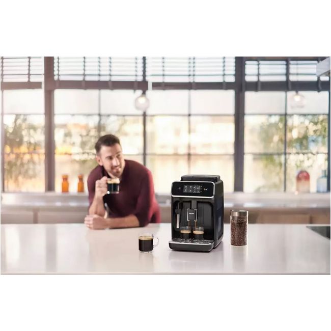 Ekspres Philips 2200 posiada czytelny, dotykowy panel sterowania, który sprawia, że obsługa urządzenia jest wyjątkowo prosta. Wystarczy wybrać rodzaj kawy i dotknąć odpowiednią ikonkę, a aromatyczny napój zostanie błyskawicznie zaparzony!