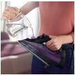 Ergonomiczny uchwyt o specjalnej fakturze zapewnia wygodę i ułatwia trzymanie żelazka bez ryzyka, że się wyślizgnie.