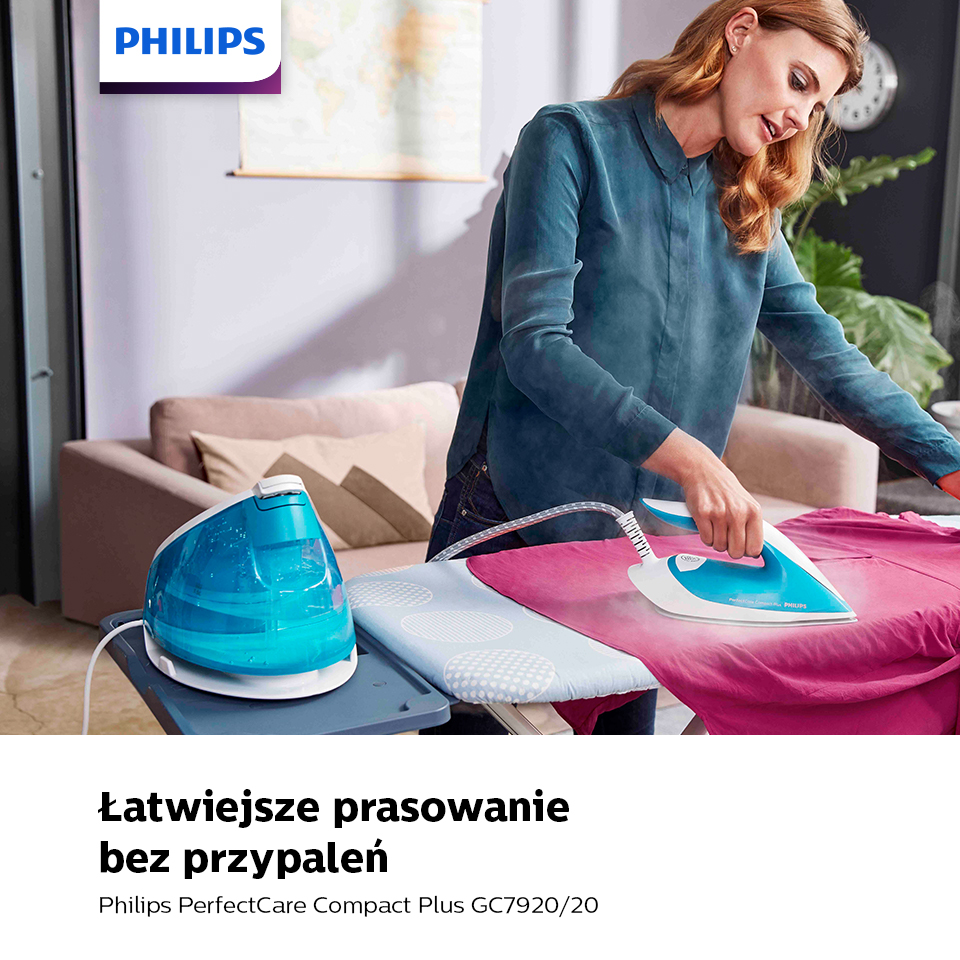 Lekkie i kompaktowe żelazko jest niezwykle wydajne. Ma bardzo silny wyrzut pary, który umożliwia wygodne prasowanie w pionie np. firanek lub ubrań z aplikacjami.