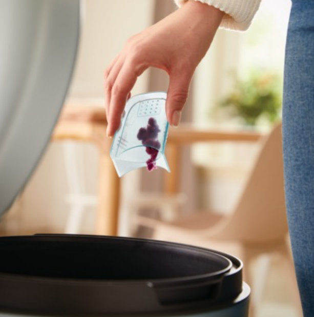 Pojemnik, w którym znajdują się zebrane zmechacenia, można łatwo wyjmować i opróżniać.