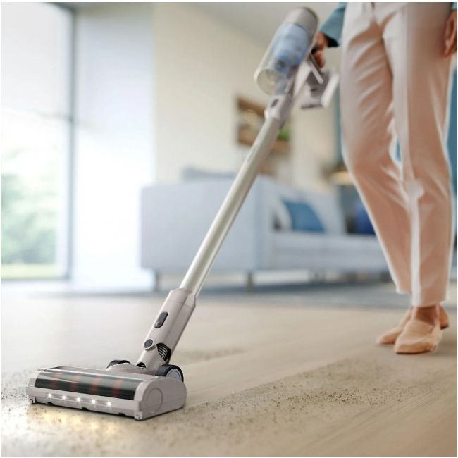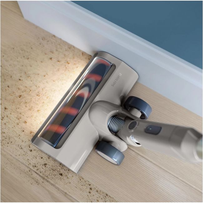 Z bezprzewodowym odkurzaczem 2000 firmy Philips wystarczy jedno sprzątanie, aby dokładnie wyczyścić podłogi. Nasadka z diodami LED pozwala uwidocznić ukryty kurz i brud, który następnie jest skutecznie usuwany dzięki technologii PowerCyclone 7. Aż 40 minut pracy na jednym ładowaniu ułatwia sprzątanie domu.