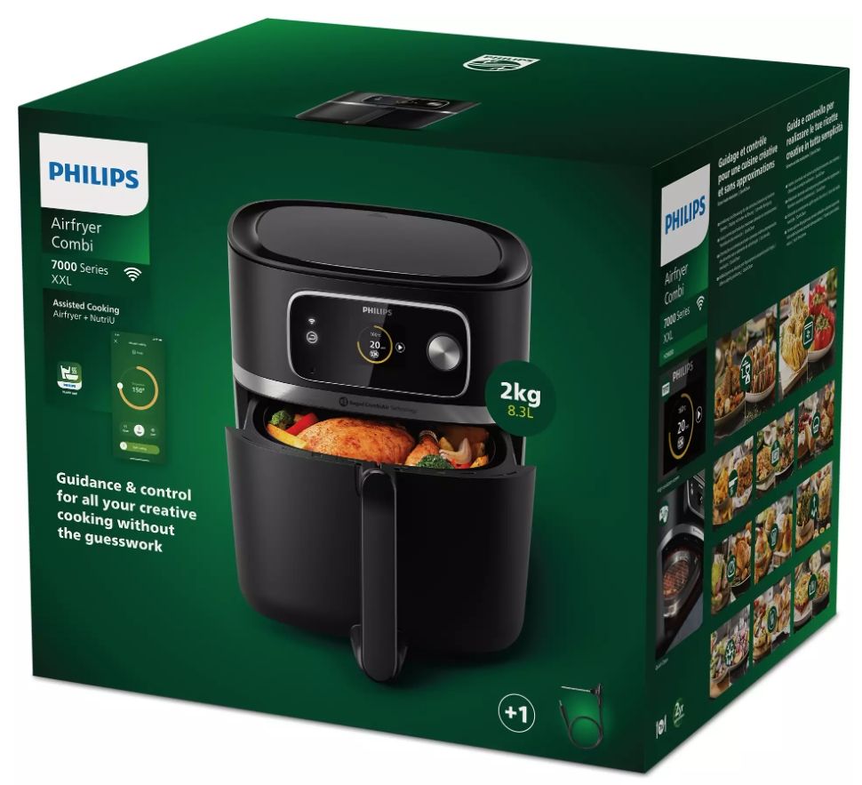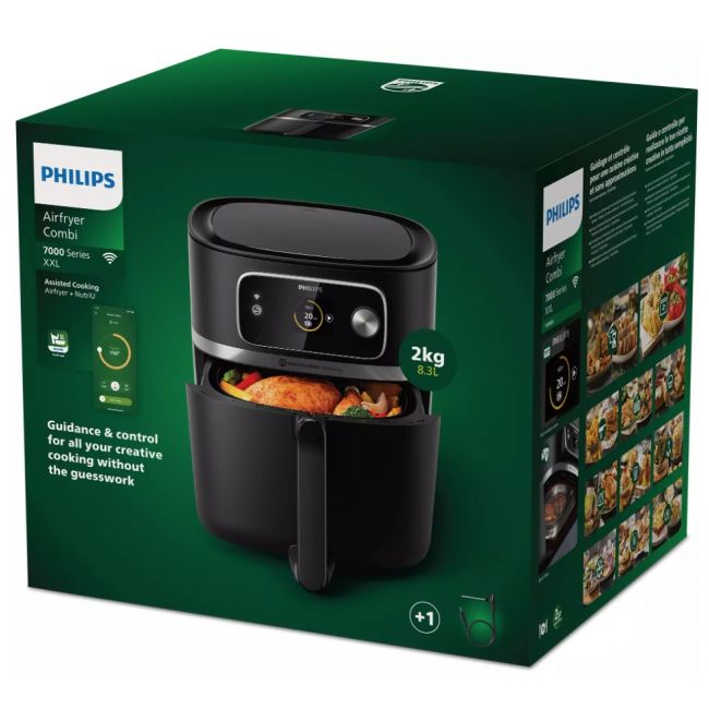 Więcej jedzenia w krótszym czasie: gotowanie większych porcji lub przygotowywanie posiłków dla ponad 7 osób jest teraz łatwiejsze i wygodniejsze dzięki pojemności XXL równej 2 kg / 8,3 l dostępnej w naszym największym urządzeniu Airfryer.