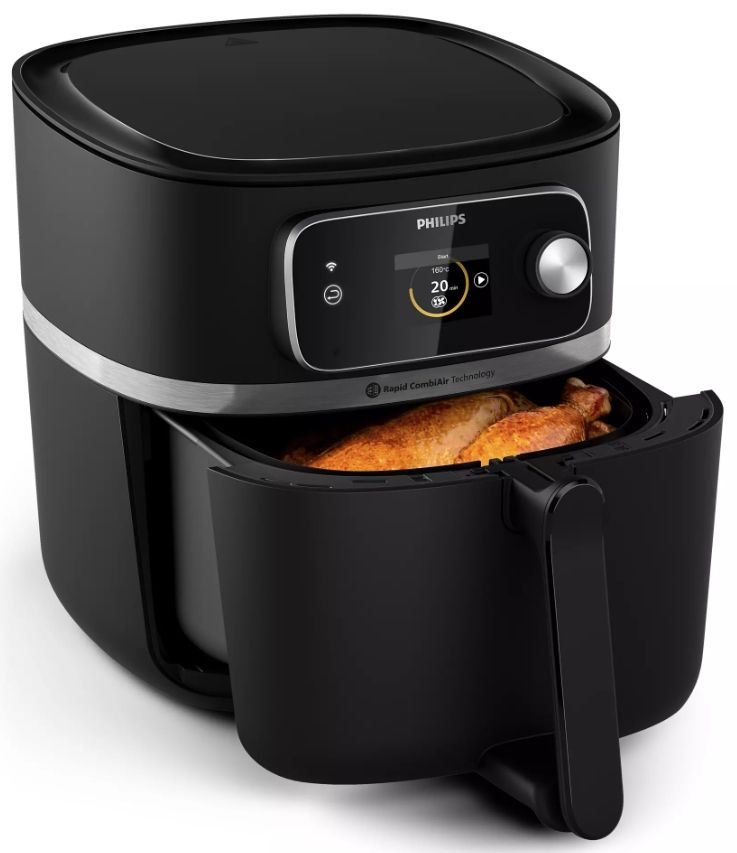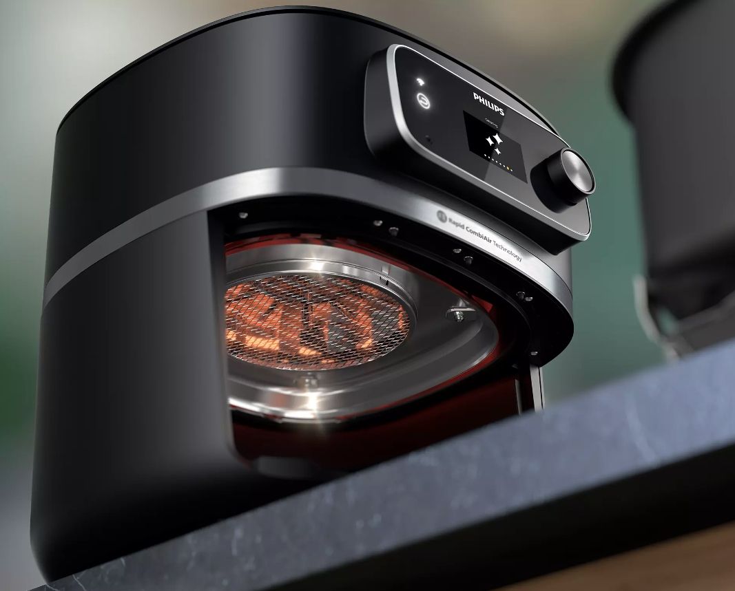 Bez wątpienia zdrowe: twoje potrawy będą smakować dokładnie tak, jak lubisz, ale będą zawierać aż 99%*** mniej dodatkowego tłuszczu. Ponieważ w urządzeniu Airfryer Combi do gotowania wykorzystywane jest gorące powietrze, możesz delektować się przepysznym smakiem potraw bez konieczności stosowania oleju.