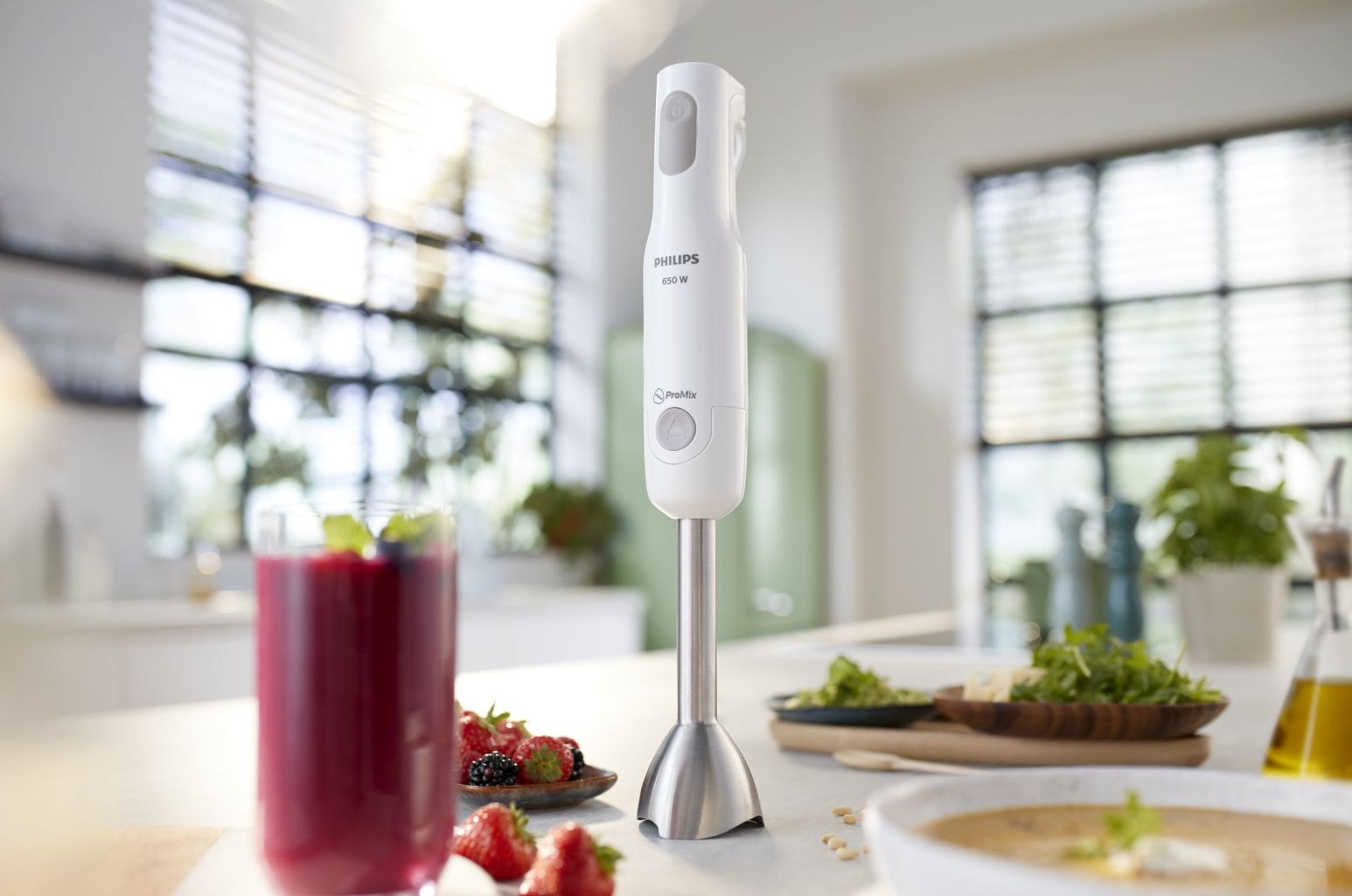 Dzięki silnikowi o dużej mocy i unikalnej ergonomicznej konstrukcji blender ręczny zapewnia szybkie i wydajne miksowanie - wystarczy nacisnąć przycisk, aby przygotować zdrowe domowe posiłki każdego dnia, bez wysiłku!