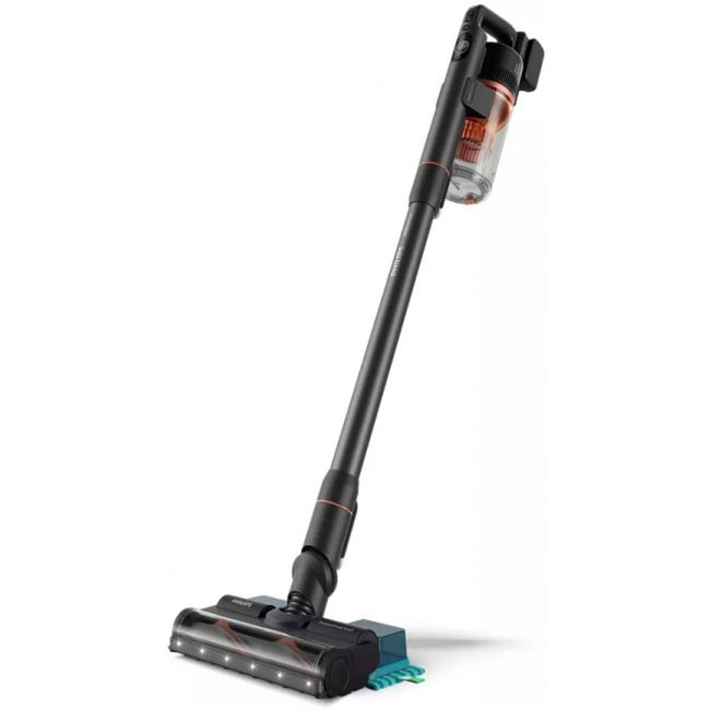Wystarczy jeden ruch, aby inteligentna nasadka PrecisionPower usunęła nawet 99,9% kurzu i brudu. Funkcja inteligentnego rozpoznawania twardych i miękkich podłóg automatycznie dostosowuje prędkość obrotów szczotki i siłę przepływu powietrza.