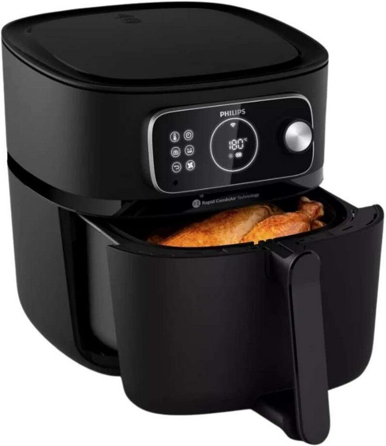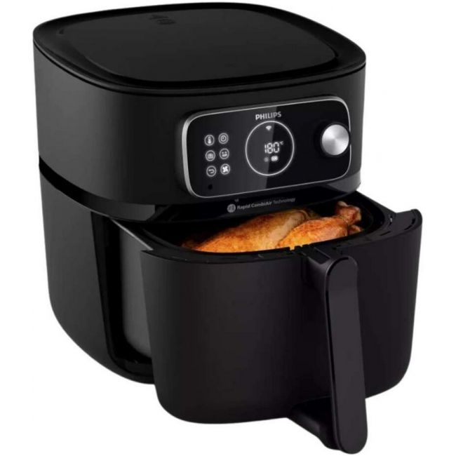 Bez wątpienia zdrowe: twoje potrawy będą smakować dokładnie tak, jak lubisz, ale będą zawierać aż 99%* mniej dodatkowego tłuszczu. Ponieważ w urządzeniu Airfryer Combi do gotowania wykorzystywane jest gorące powietrze, możesz delektować się przepysznym smakiem potraw bez konieczności stosowania oleju.