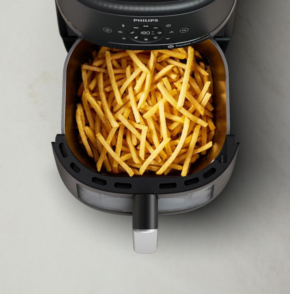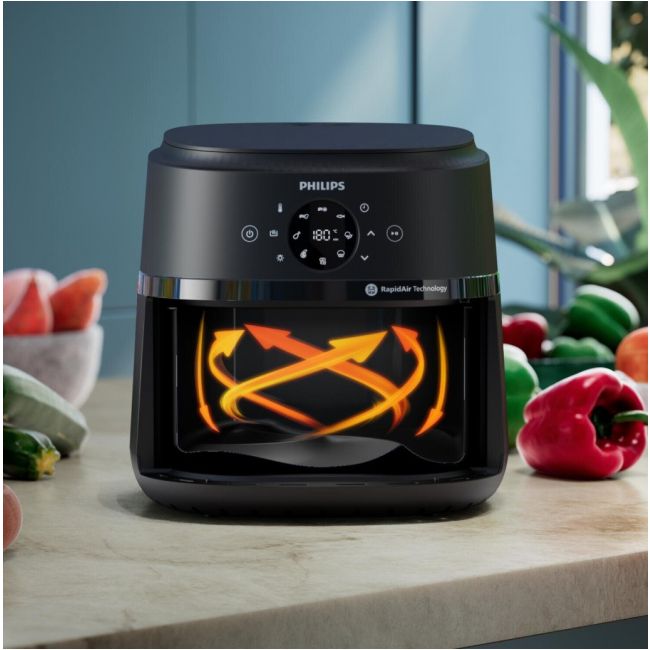 Chrupiące na zewnątrz i delikatne w środku potrawy z niewielką ilością lub bez dodatku oleju. Technologia RapidAir wraz z unikalną płytą StarPlate zapewnia doskonały przepływ powietrza oraz szybkie i smaczne dania za każdym razem.