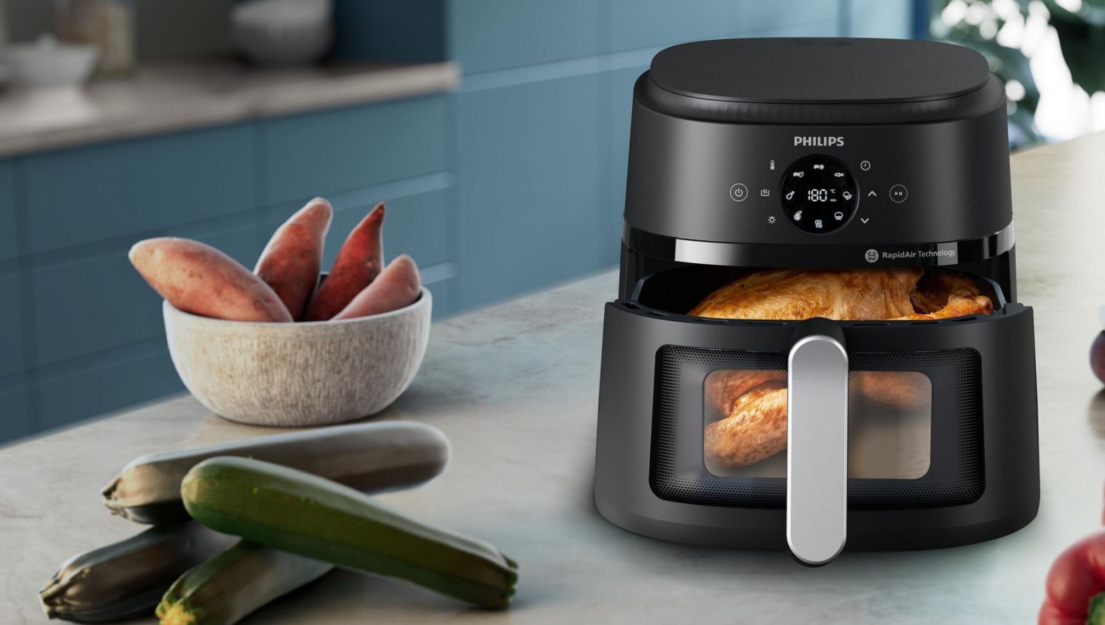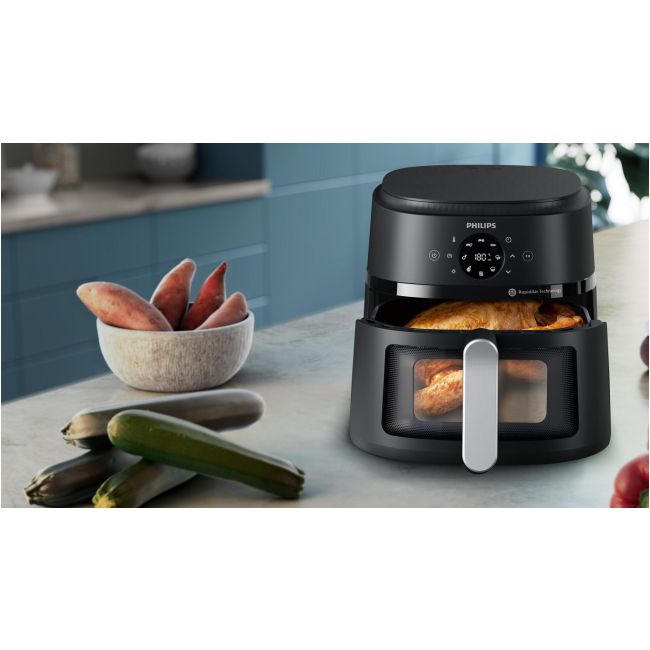 Chrupiące na zewnątrz, delikatne w środku. Unikalna technologia RapidAir oszczędza czas i energię, bez uszczerbku dla smaku. Obserwuj przez okienko, jak Twoje ulubione składniki zamieniają się w pyszne jedzenie w mniej niż 20 minut.