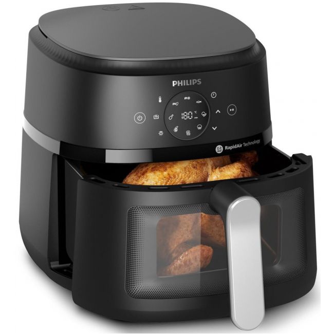 Chrupiące na zewnątrz i delikatne w środku potrawy z niewielką ilością lub bez dodatku oleju. Technologia RapidAir wraz z unikalną płytą StarPlate zapewnia doskonały przepływ powietrza oraz szybkie i smaczne dania za każdym razem.