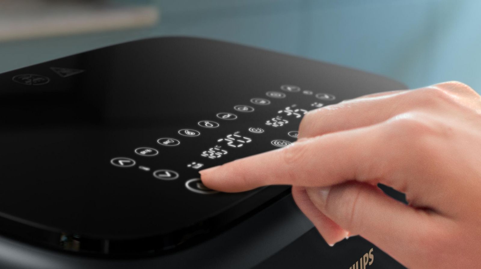 Nigdy więcej sprawdzania i zgadywania ustawień. Na ekranie dotykowym znajdziesz zaprogramowane ustawienia czasu i temperatury do świeżych frytek, mrożonych frytek, kurczaka, mięsa,warzyw, ryb, ciasta lub odgrzewania potraw.
