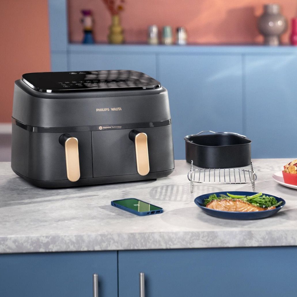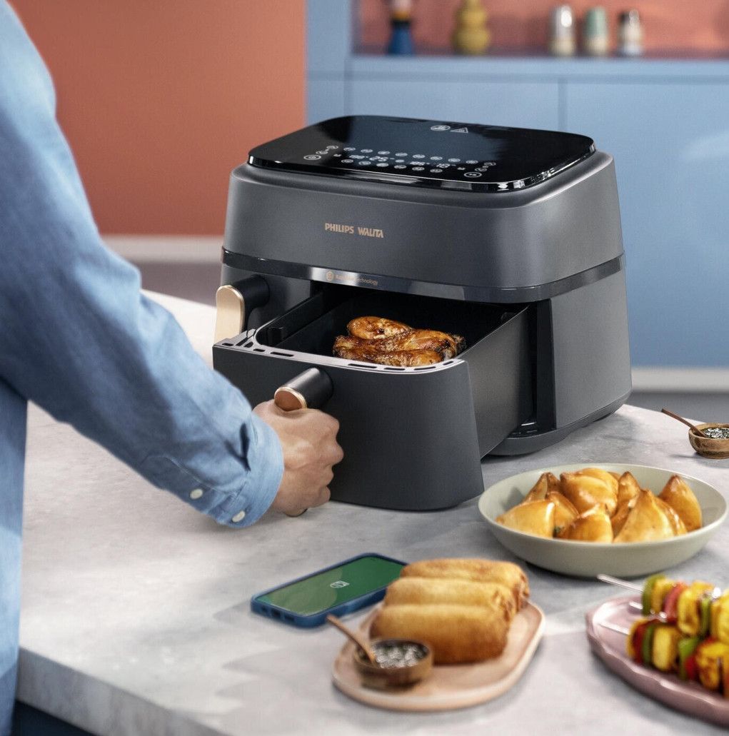 Najlepsza podwójna frytownica na gorące powietrze z dopasowanymi przepisami w aplikacji HomeID. Zobacz, jak krok po kroku przyrządzić setki pysznych posiłków dzięki odpowiednim ustawieniom frytownicy.