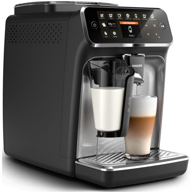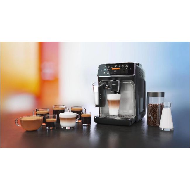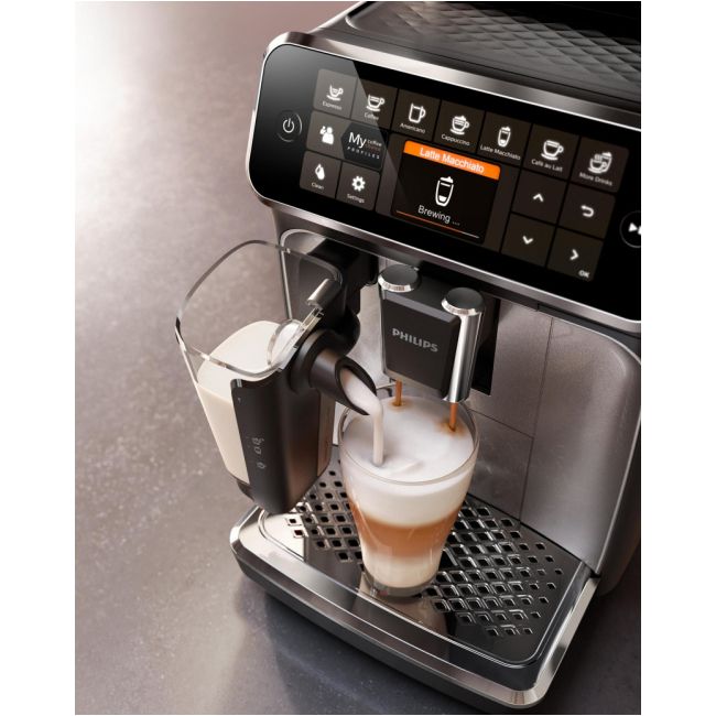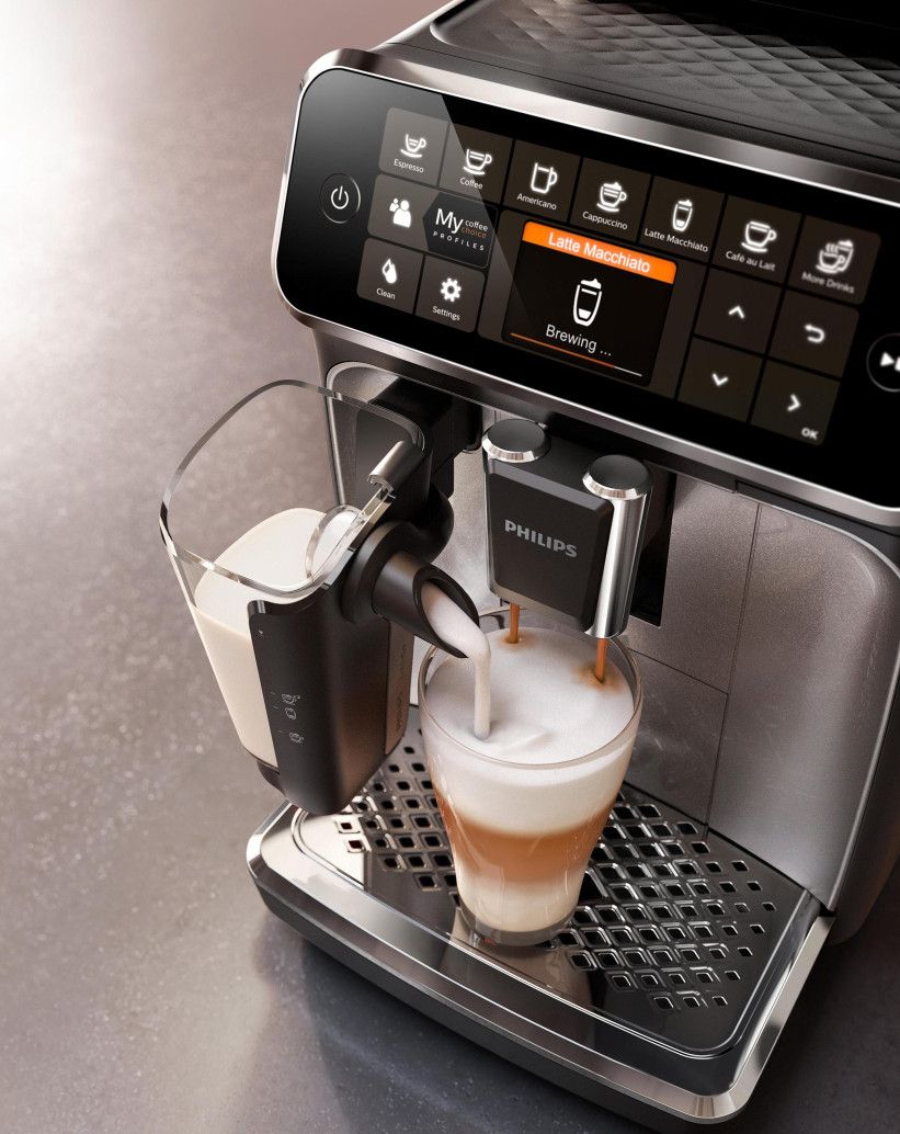 Wystarczy jeden przycisk, aby w łatwy sposób przygotować aromatyczną kawę — espresso, klasyczną czarną kawę, cappuccino czy latte macchiato. Prosty w użyciu system spieniania mleka LatteGo zwieńczy kawy mleczne aksamitną gładką pianką, a jego czyszczenie zajmie zaledwie 15 sekund.