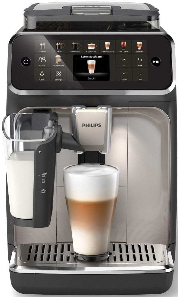 - Regulowana wysokość wylewki kawy: 85–145 mm - System spieniania mleka LatteGo - Ceramiczny młynek - 12-stopniowa regulacja młynka - Pojemność pojemnika na mleko: 0,26 l - Profile użytkownika: 4 + profil gościa - QuickStart - Funkcja Extra Shot
