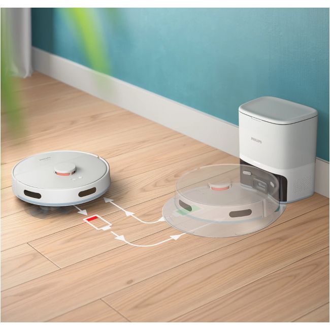 Ciesz się sprzątaniem bez wysiłku dzięki robotowi, który odkurza i mopuje podłogę z niezwykłą mocą ssania. Korzystaj z urządzenia przez 70 dni wygodnie i bezproblemowo dzięki stylowej stacji automatycznego opróżniania. Odkryj zaawansowane sprzątanie dostosowane do potrzeb Twojego domu.