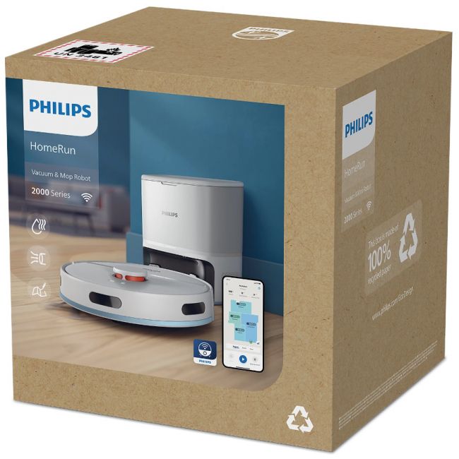 Aplikacja robota Philips HomeRun jest intuicyjna i przyjazna dla użytkownika. Zawiera instrukcje krok po kroku i pomocne filmy, które pomogą Ci w pełni wykorzystać możliwości robota. Aplikacja komunikuje się z Twoim robotem, dzięki czemu możesz kontrolować wydajność sprzątania z dowolnego miejsca, przeglądać raporty i aktualizacje dotyczące wydajności sprzątania oraz dowiedzieć się w czasie rzeczywistym, które obszary zostały już wyczyszczone. Zdecyduj, jak posprzątać pomieszczenie, gdzie robot nie może sprzątać lub o której godzinie robot powinien posprzątać Twój dom, aby podłoga lśniła czystością, gdy wrócisz do domu.