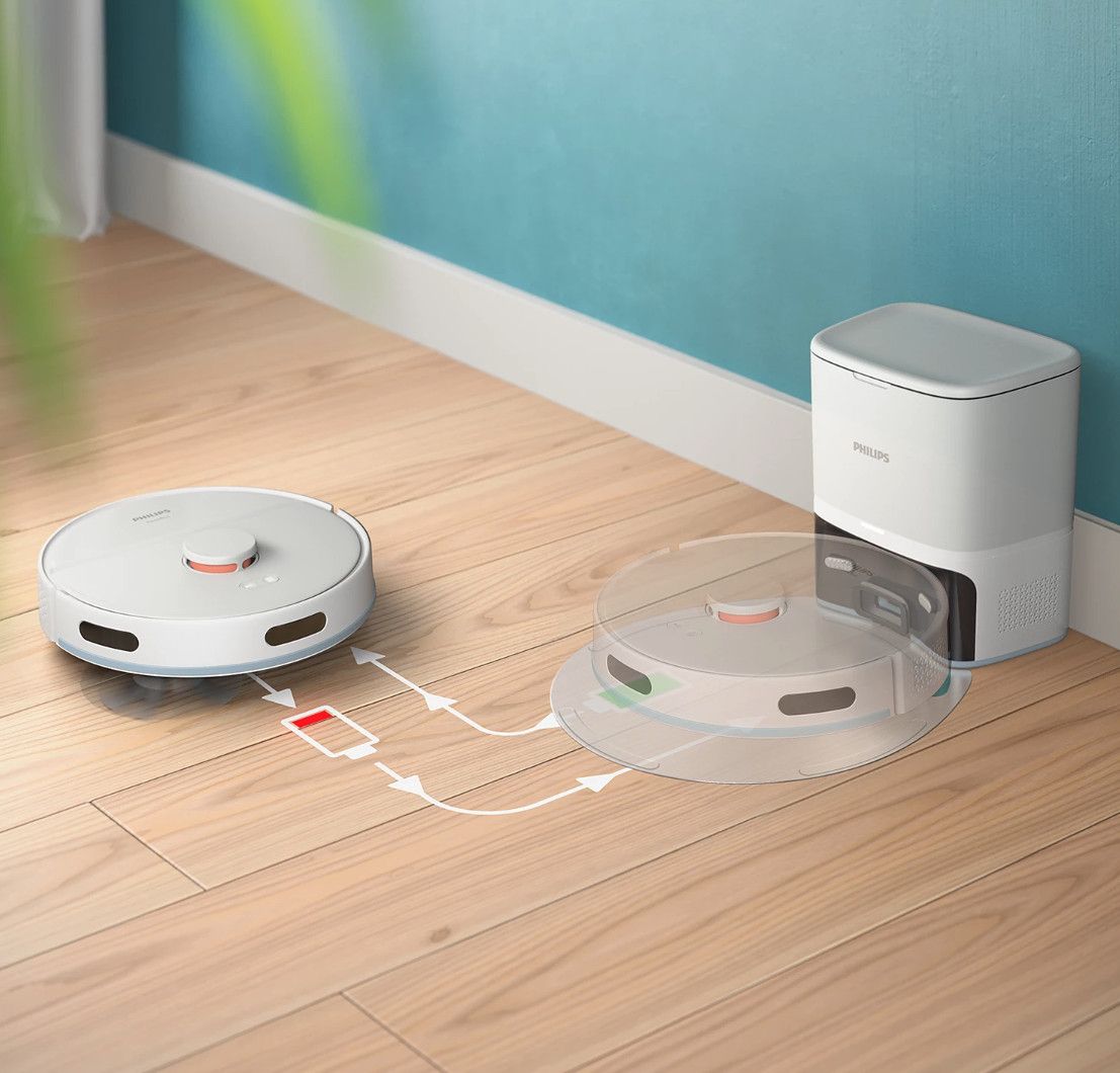 Dzięki czasowi pracy do 130 minut, wystarczającemu na powierzchnię do 120 m², możesz wykonać pełne sprzątanie na jednym ładowaniu akumulatora. Gdy bateria jest już prawie wyczerpana, robot automatycznie ją ładuje. Po naładowaniu akumulatora powróci on do miejsca, w którym przerwano czyszczenie, i wznowi go.