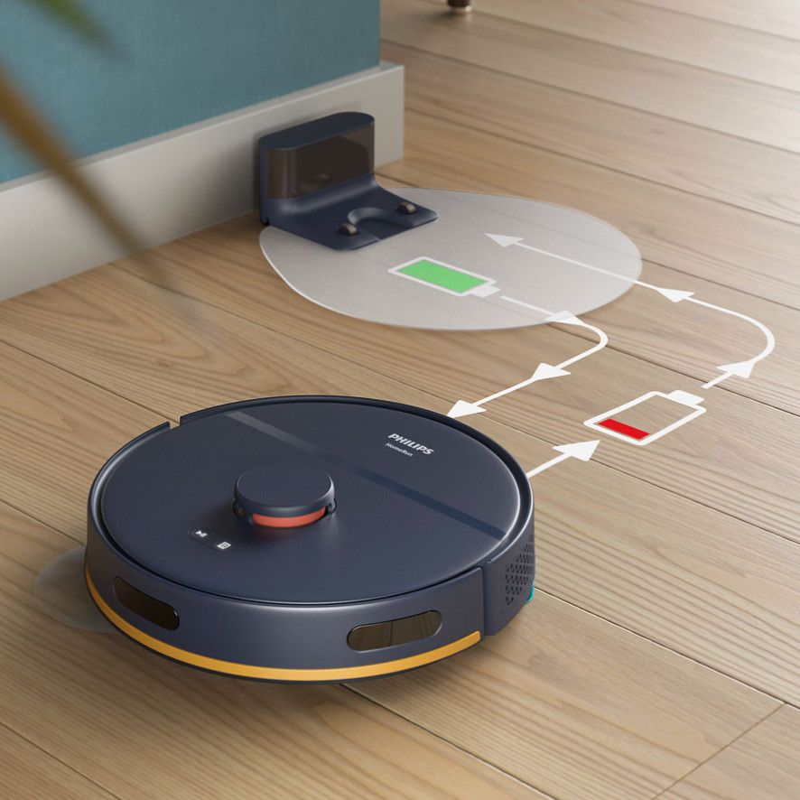 Dzięki czasowi pracy do 130 minut, wystarczającemu na powierzchnię do 120 m², możesz wykonać pełne sprzątanie na jednym ładowaniu akumulatora. Gdy bateria jest już prawie wyczerpana, robot automatycznie ją ładuje. Po naładowaniu akumulatora powróci on do miejsca, w którym przerwano czyszczenie, i wznowi go.