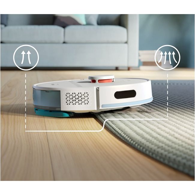 Robot automatycznie zwiększa moc ssania, gdy znajduje się na dywanie, aby zebrać drobne cząsteczki kurzu ukryte głęboko w dywanie.