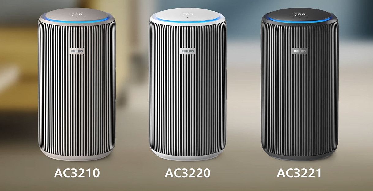 Filtry zamienne do oczyszczaczy powietrza Philips PureProtect serii 3200: modele AC3210, AC3220 i AC3221. Model oczyszczacza powietrza jest wskazany poniżej urządzenia.