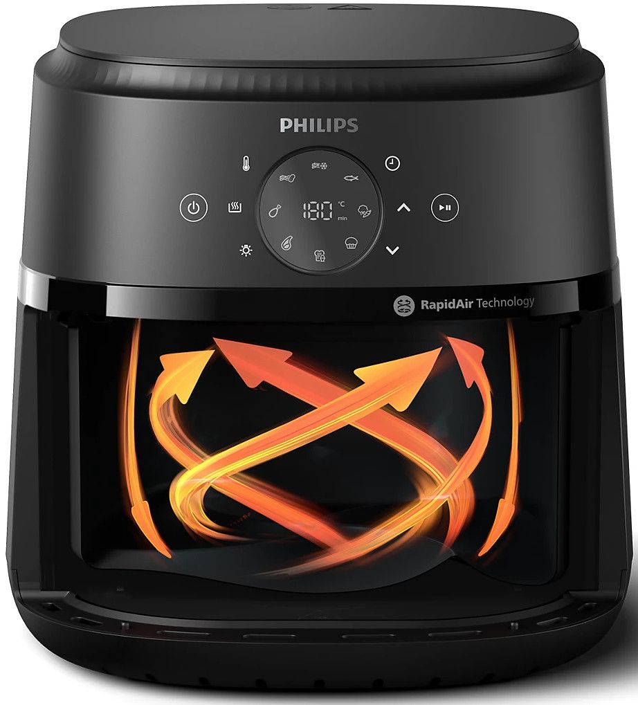 Chrupiące na zewnątrz i delikatne w środku potrawy z niewielką ilością lub bez dodatku oleju. Technologia RapidAir wraz z unikalną płytą StarPlate zapewnia doskonały przepływ powietrza oraz szybkie i smaczne dania za każdym razem.