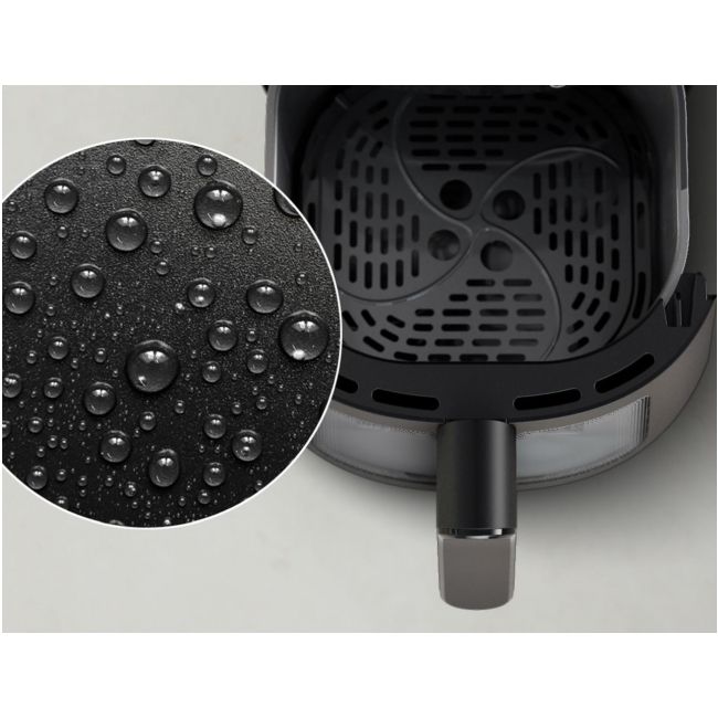 Kompaktowa konstrukcja jest odpowiednia dla kuchni o każdym rozmiarze. Patelnia o pojemności 6,2 l mieści do 800 g frytek, 8 udek z kurczaka lub 800 g warzyw.