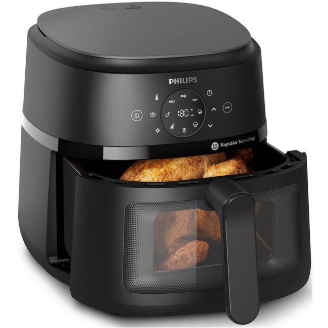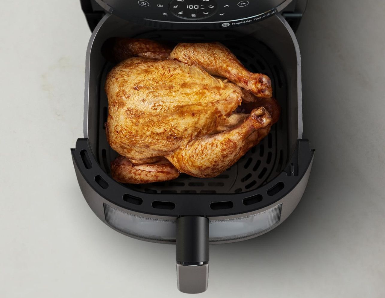 Chrupiące na zewnątrz i delikatne w środku potrawy z niewielką ilością lub bez dodatku oleju. Technologia RapidAir wraz z unikalną płytą StarPlate zapewnia doskonały przepływ powietrza oraz szybkie i smaczne dania za każdym razem.