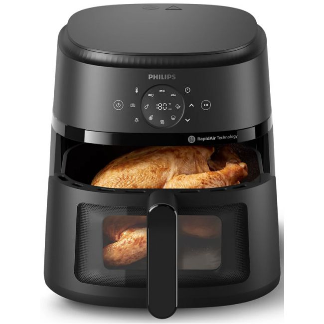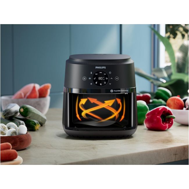 Chrupiące na zewnątrz, delikatne w środku. Unikalna technologia RapidAir oszczędza czas i energię, nie tracąc przy tym smaku. Obserwuj przez okno gotowania, jak Twoje ulubione składniki zamieniają się w pyszne jedzenie w niecałe 15 minut.