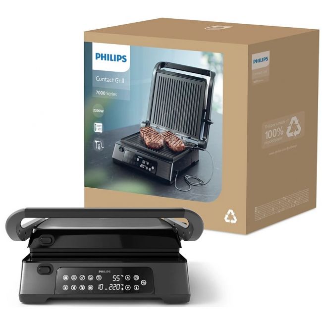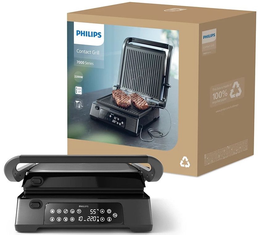Moc 2200 W szybko nagrzewa płyty grilla i utrzymuje precyzyjną, stałą temperaturę, zapewniając doskonałe rezultaty.