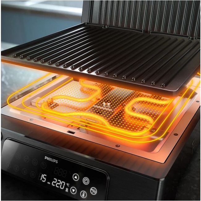 Ciesz się grillowaniem dzięki 8 zaprogramowanym przyciskom do rozmrażania, burgerów, ryb, kurczaka, warzyw i mięsa (słabo, średnio i dobrze wysmażone).