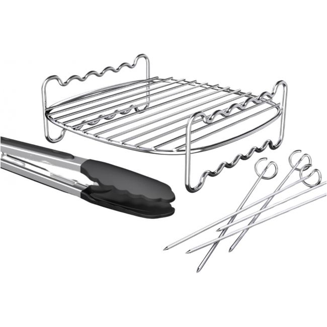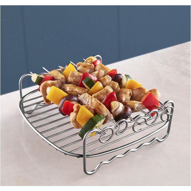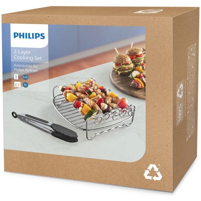 Dzięki 2-warstwowemu zestawowi można maksymalnie zwiększyć powierzchnię gotowania w urządzeniu Airfryer. Grilluj lub smaż smaczne burgery, skrzydełka kurczaka, ryby i nie tylko. Przyrządzaj potrawy w łatwy, szybki i zdrowy sposób. Używaj szpikulców, aby przygotować szaszłyki warzywne lub mięsne.