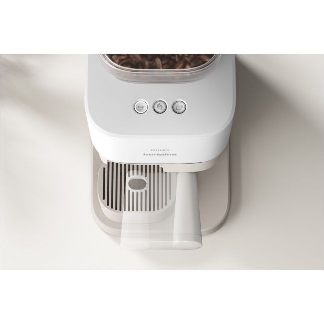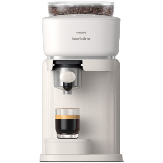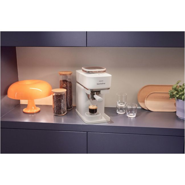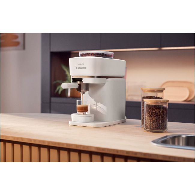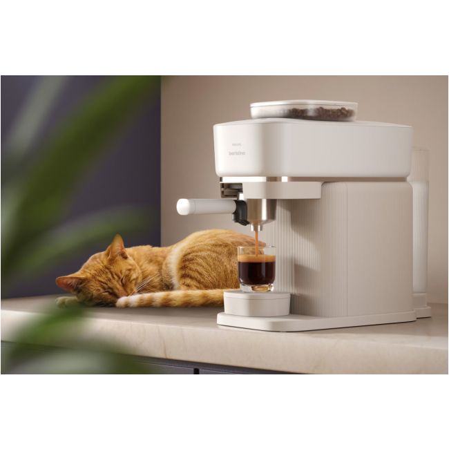Twój osobisty barista, który zmieści się na każdym kuchennym blacie. Wsyp ziarna, przesuń uchwyt i delektuj się wyśmienitym espresso. Ekspres automatycznie mieli ziarna, uwalniając ich super świeży aromat. Perfekcyjnie ubija kawę w portafiltrze, a do tego idealnie dobiera ciśnienie. Twój nowy ulubiony barista, który czeka na każde skinienie. Przesuń uchwyt i przygotuj się na prawdziwe espresso ze świeżo zmielonych ziaren