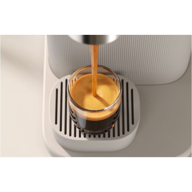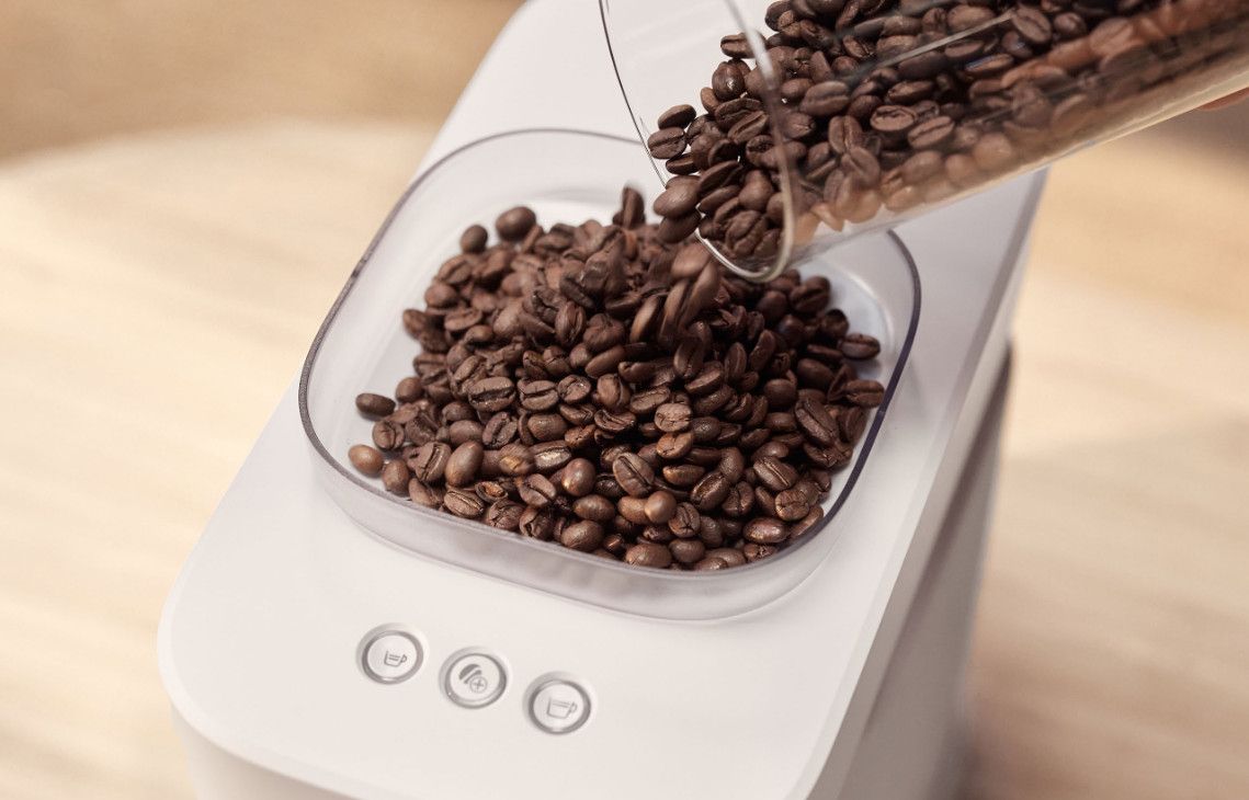 Ekspres na tyle mały, aby zmieścić się na każdym kuchennym blacie, a jednocześnie wystarczająco mocny, aby przygotować kawę jak od baristy. Zmienia ziarna w fusy, które doskonale nadają się na kompost.