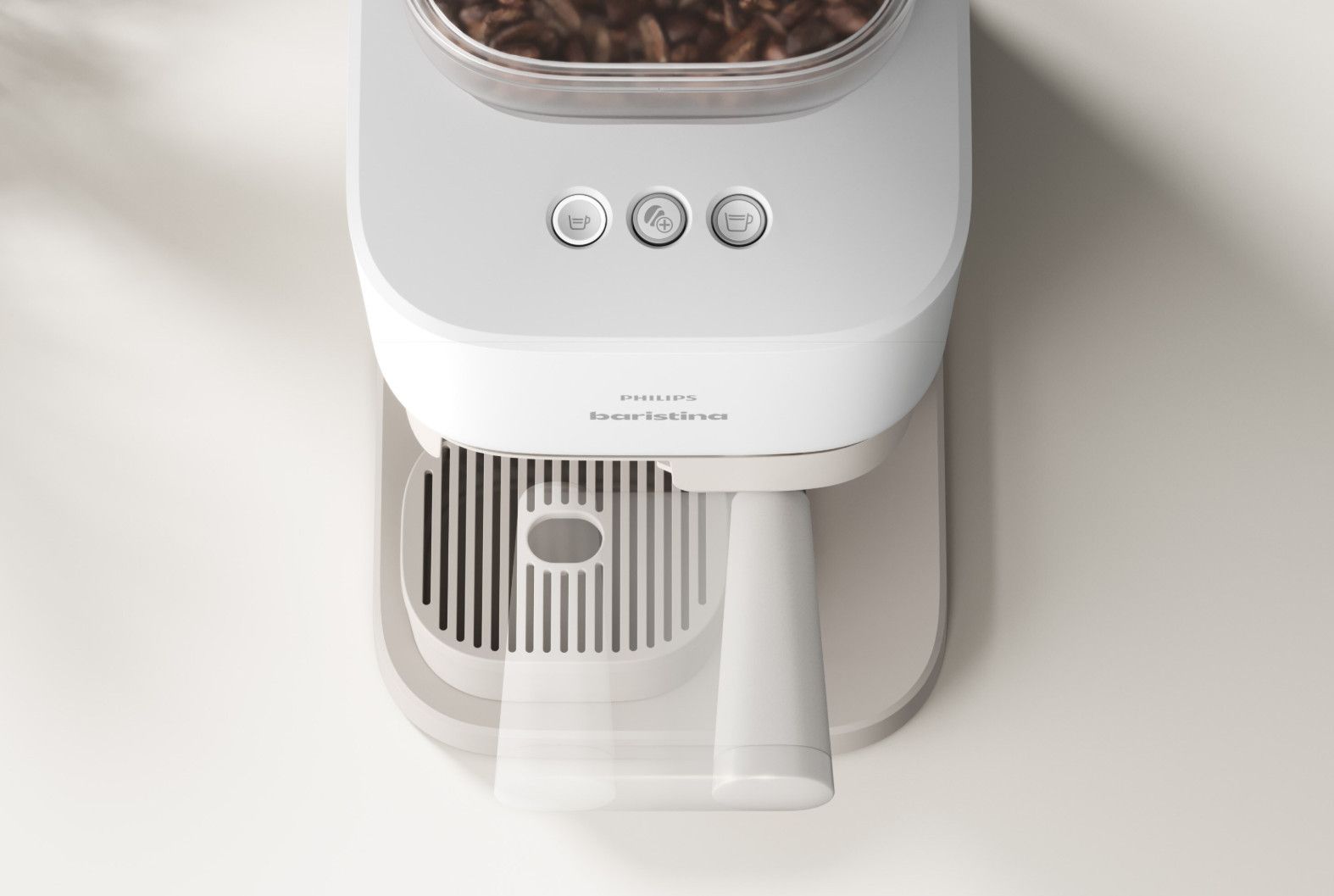 Przesuń uchwyt i pozwól Baristinie zrobić resztę. Ekspres automatycznie zmieli ziarna, ubije kawę i zaparzy espresso. Bez zamieszania, bez zbędnych ustawień.