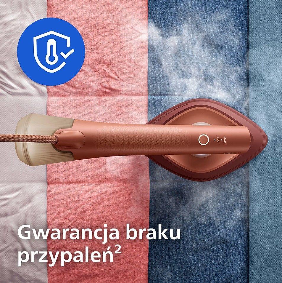 Doskonałe rezultaty prasowania bez masywności i uciążliwości tradycyjnego żelazka. Nasza innowacyjna technologia zapewnia mocną, stałą parę i gwarantuje brak plam* dla gładkich rezultatów na każdym materiale – od delikatnych jedwabi po grubą bawełnę.