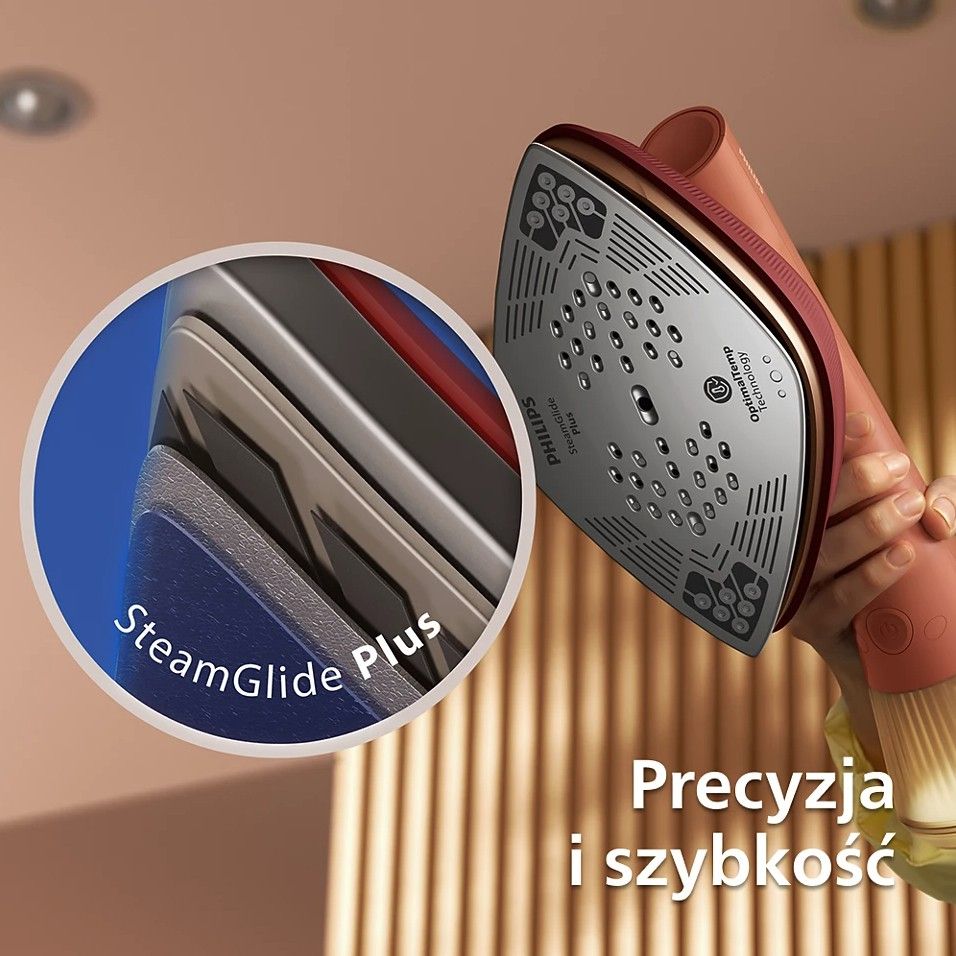 Technologia OptimalTemp to jedna, idealna temperatura dla wszystkich tkanin nadających się do prasowania. Nie musisz sortować ubrań, czekać aż urządzenie się schłodzi lub dogrzeje - po prostu prasuj wszystko z taką samą pewnością.
