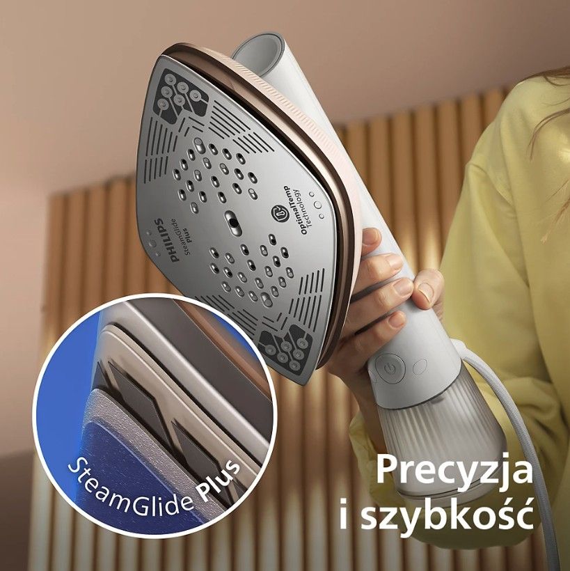 Doskonałe rezultaty prasowania bez masywności i uciążliwości tradycyjnego żelazka. Nasza innowacyjna technologia zapewnia mocną, stałą parę i gwarantuje brak plam* dla gładkich rezultatów na każdym materiale – od delikatnych jedwabi po grubą bawełnę.