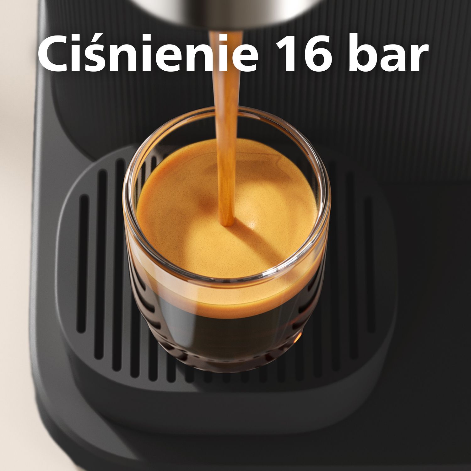 Pompa o ciśnieniu 16 barów pozwala wydobyć pełnię smaku z ziaren kawy.