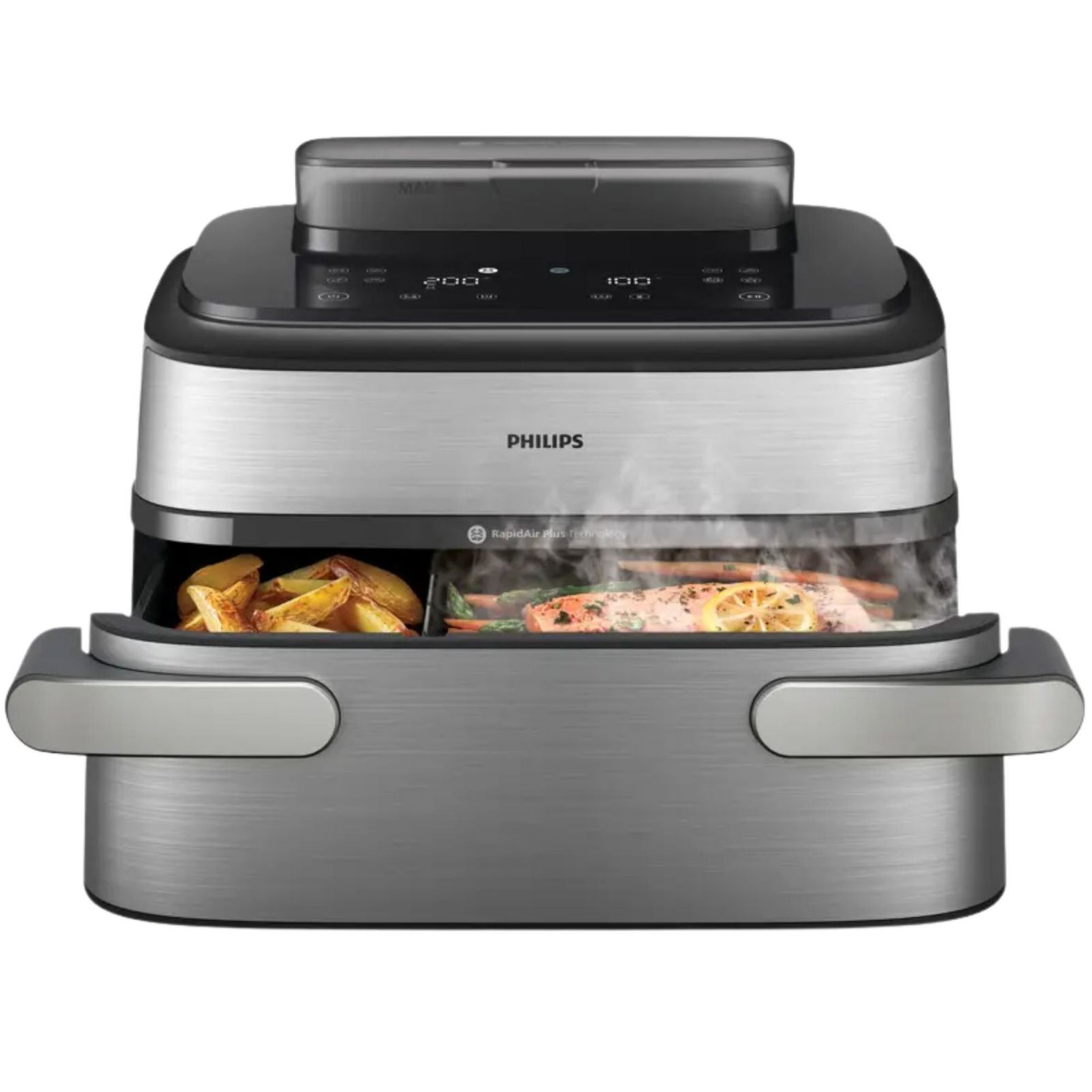 Para i gorące powietrze współpracują ze sobą, zapewniając rezultaty wykraczające poza chrupkość – zatrzymują wilgoć, zwiększają delikatność i tworzą tekstury, które są zarówno soczyste, jak i złociste, dając to, co najlepsze z obu światów. Idealne do złocistej pizzy, chrupiącego chleba, soczystego kurczaka i pieczonych warzyw w Philips Ovi Ultra z funkcją Steamfry.