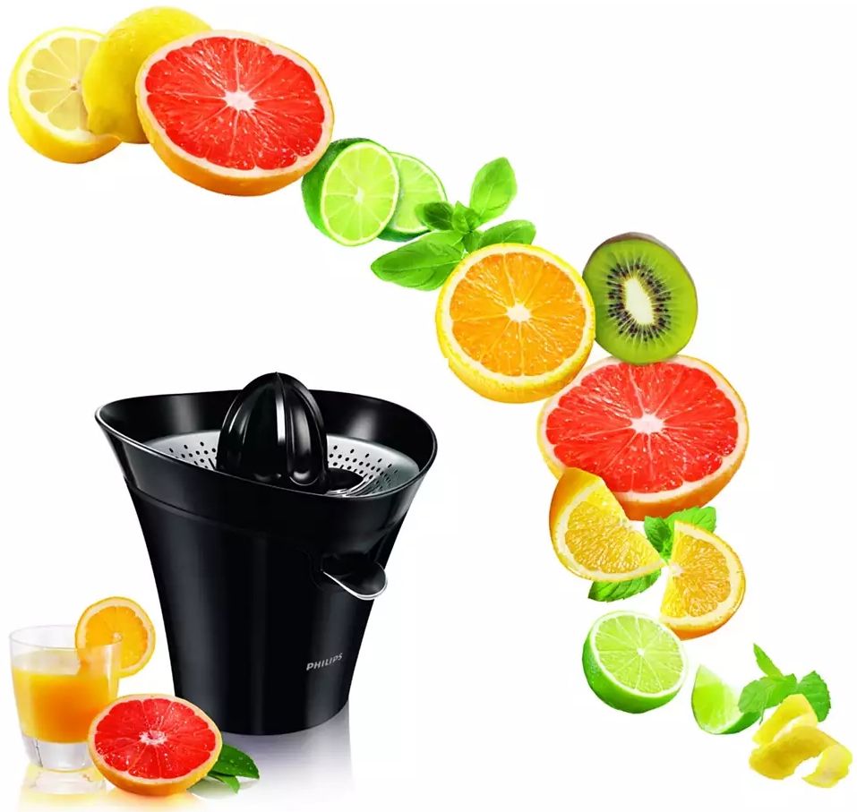 Rozpocznij dzień od świeżo wyciśniętego soku z cicho pracującej wyciskarki do cytrusów. Silnik o mocy 85 W z łatwością upora się z tym zadaniem.