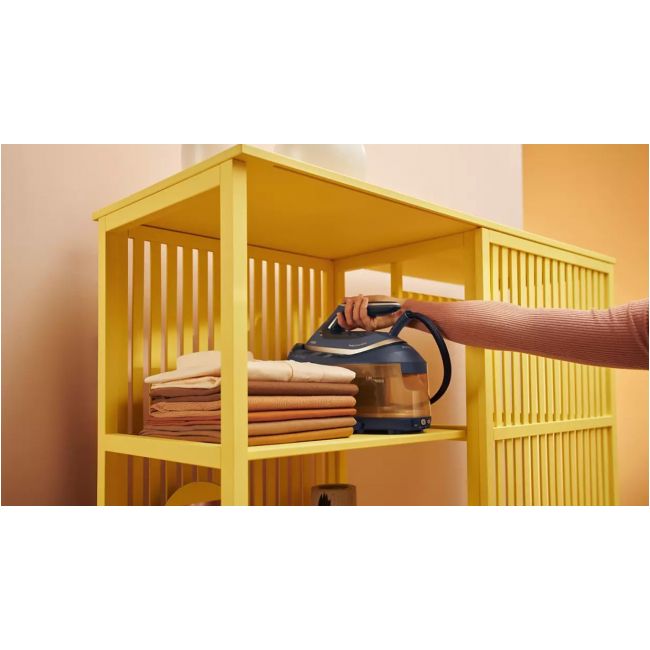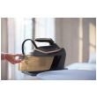 Wbudowany system usuwania kamienia Smart Calc Clean ułatwia konserwację żelazka z generatorem pary. W odpowiednim momencie przypomina on o konieczności odkamienienia. Co więcej, jest wyposażony w pojemnik, dzięki któremu usuwanie kamienia jest łatwe i bezpieczne. System służy do wielokrotnego użytku, co gwarantuje oszczędność — nie trzeba kupować dodatkowych wkładów.