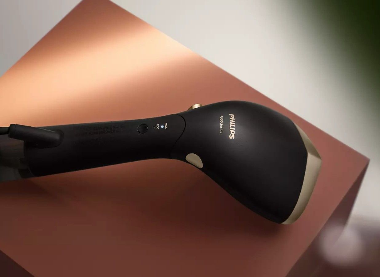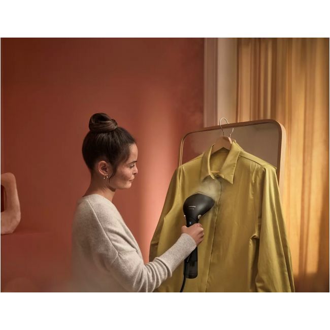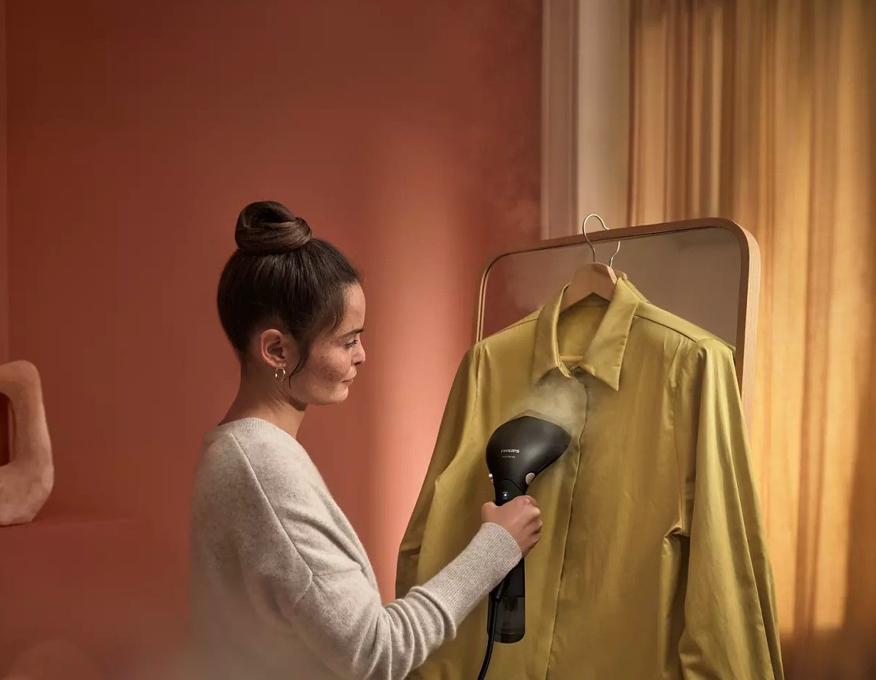 Seria 7000 ma małe wymiary, dzięki czemu możesz zabrać swój steamer ze sobą, aby odświeżyć ubrania, gdy będę tego potrzebowały — bez rozkładania deski do prasowania.