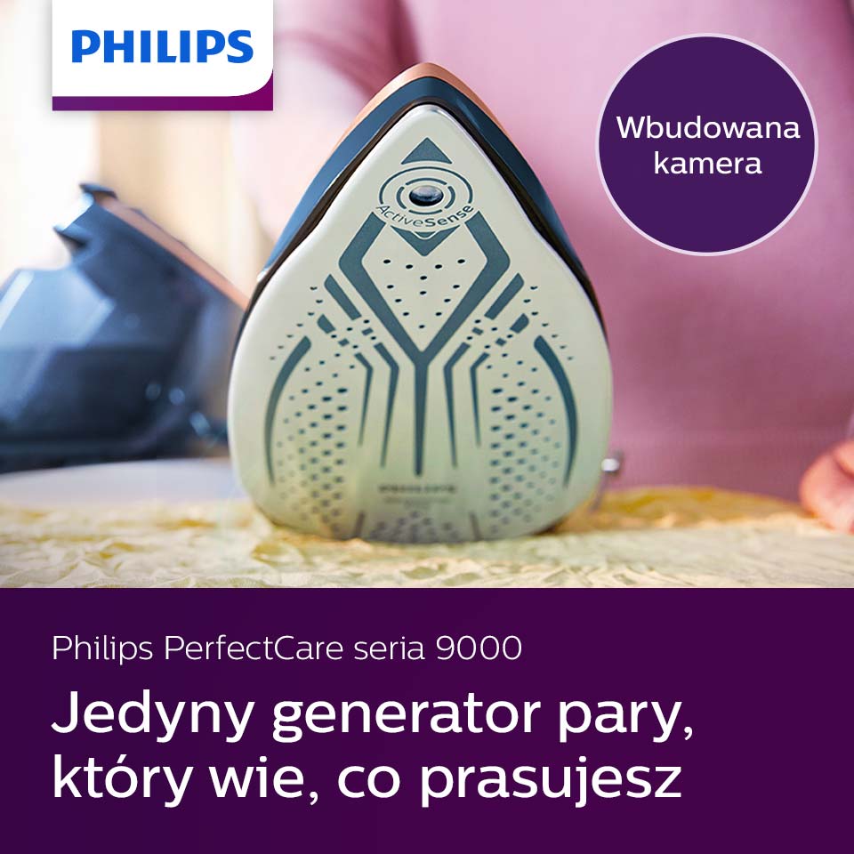 Żelazko PerfectCare z serii 9000 jest wyposażone w pierwszą na świecie technologię wykrywania tkanin o nazwie ActiveSense. Dzięki wbudowanej kamerze i sztucznej inteligencji urządzenie wie, co prasujesz, i dostosowuje idealną temperaturę i ilość pary, aby uzyskać doskonałe rezultaty bez wysiłku.