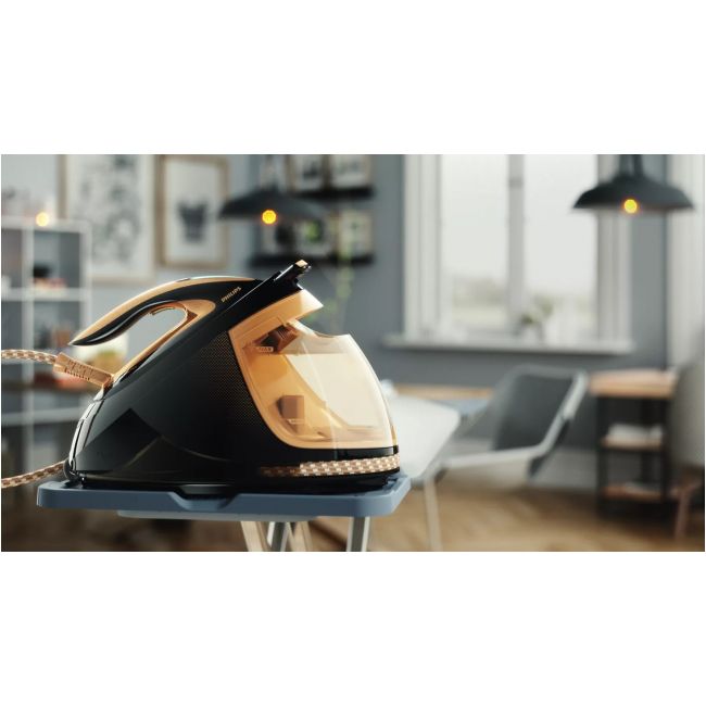 PerfectCare Elite Plus to generator pary, który oferuje łatwiejsze prasowanie i szybsze rezultaty dzięki ultralekkiemu żelazku i inteligentnemu automatycznemu wytwarzaniu pary, zapewniając najwyższą wygodę. Gwarantowany brak konieczności ustawiania temperatury i brak przypaleń.